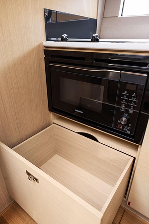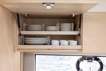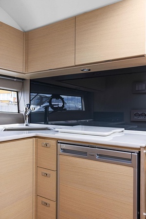 Alba Oak interior wood satin finish (random block light oak galley floor as standard)