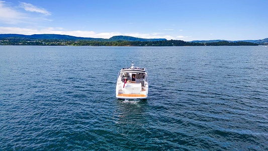 Lys, moderne og sommervennlig båt! En perfekt båt for solfylte dager og lyse sommerkvelder.