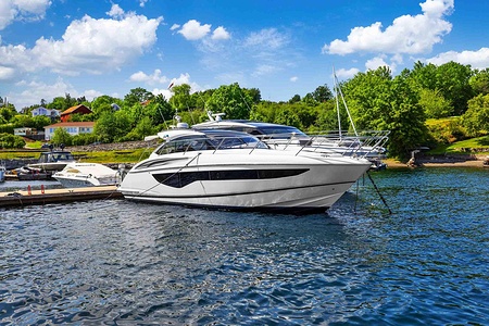 Utsyrt med 2 x Volvo Penta D6(2x380hk) som gir en topphastighet på ca. 35-37 kn. Kan ses hos Princess Yachts Norway i Vollen Marina, Oslo.