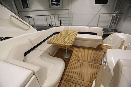 Teak på skarndäck, sittbrunn och badplattform