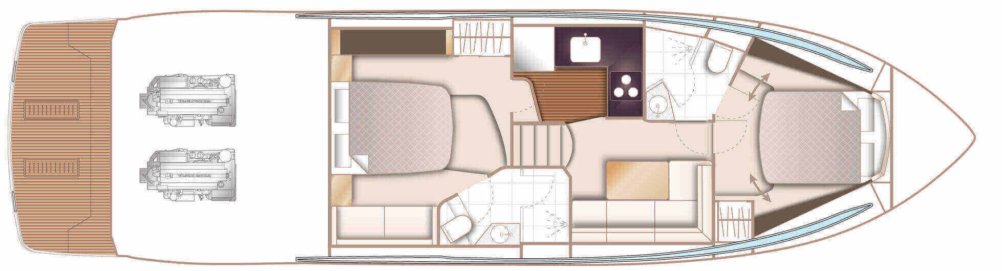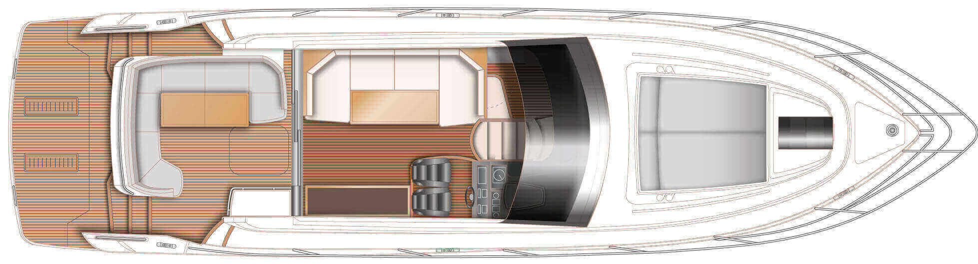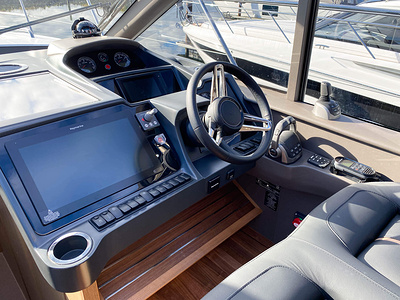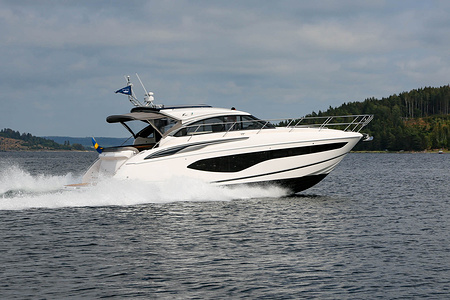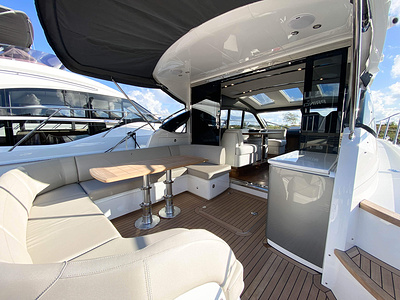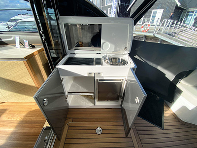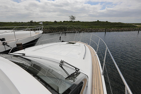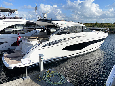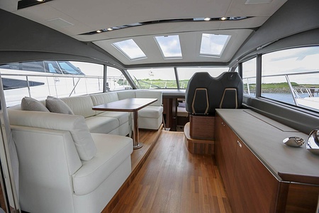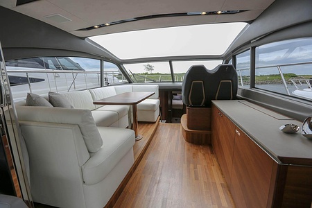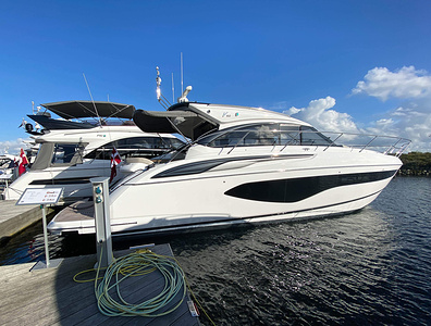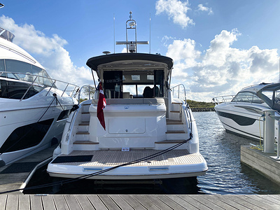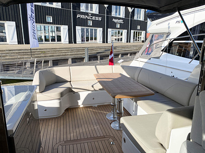 Vi har sålt en ny Princess V50 Deck Salon med två kabiner i Skandinavien. Bilderna är av en systerbåt med liknande layout.