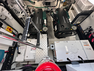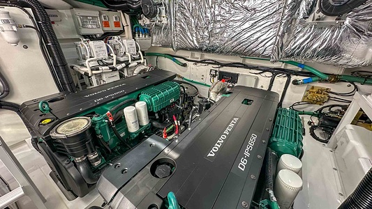 Twin Volvo IPS 650 (2 x 480 hp) including joystick control and ACP system. A Volvo autopilot (controlled via 16” Volvo/Garmin multi-function display) with manuella Volvo interceptor trim tabs