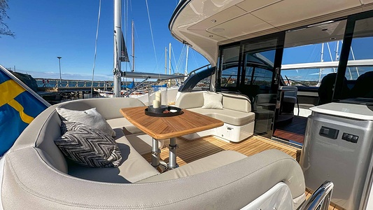 Oplev den helt nye Princess V50 Deck Saloon (2026 model) – en kombination af markant design, banebrydende teknologi og ultimativ komfort til søs.