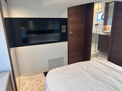 Master stateroom TV & Audio package – 43” LED TV with Fusion Apollo MS-RA670 with DAB/Bluetooth and external USB socket, paired with Focal speakers (2). With a subwoofer