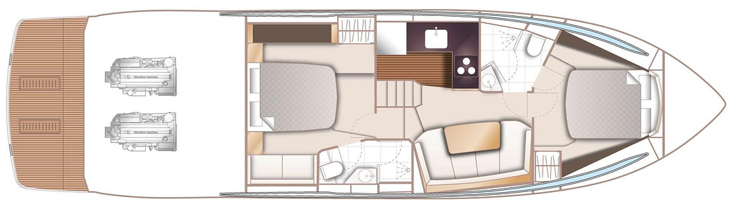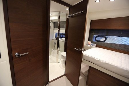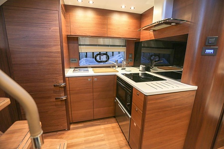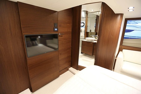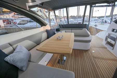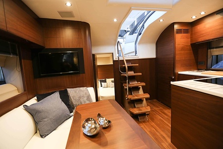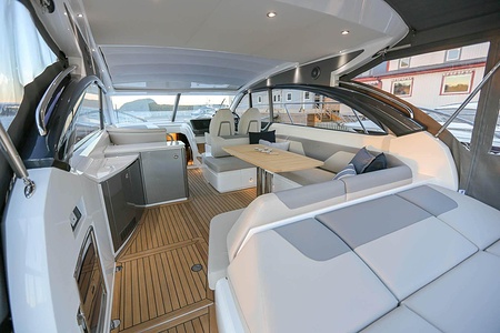 Dubbla Volvo Penta IPS 600 (2 x 435 hk) monteras som standard och inkluderar joystick, 7 tums LED display och ACP-system (antikorrosionsskydd)