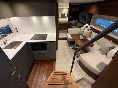 Walnut interior wood satin finish (galley floor is in walnut as standard)