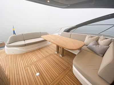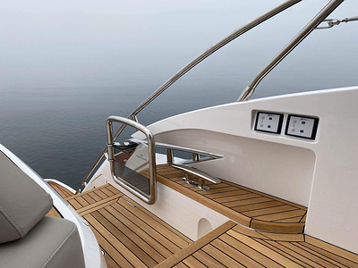 • Teak-laid transom platform, cockpit deck and steps to side decks
