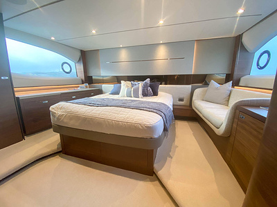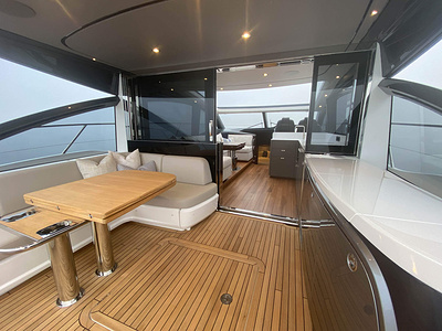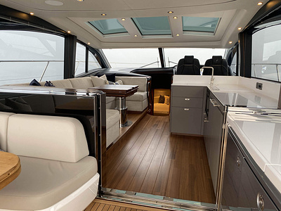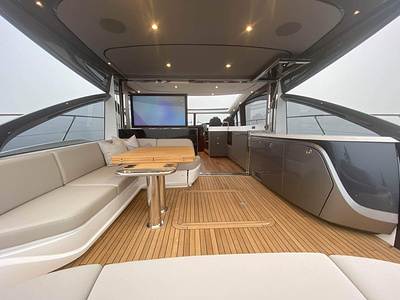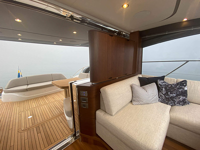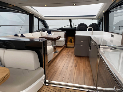 En unik möjlighet för leverans av en Princess V55, årsmodell 2021, med leverans våren 2021. Varvets senaste modell i V Class serien. Elektrisk taklucka i glasfiber och stängbar dörr förlänger säsongen tidig vår och sen höst. Under varma sommardagar körs salongsdörren ner under durk och öppnar upp till den härlig daycruiser. Båten har dessutom tre kabiner plus crew cabin, jollegarage och pentry upp i salongen. Bilder och video är av en systerbåt.