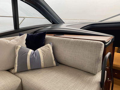 Sittbrunns- och fördäckssoffa samt akter solbäddsdynor i Vouge med kontrastfärgade inlägg och sömmar