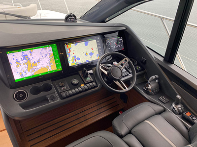 • Twin helm seats with electric adjustment for helmsman
