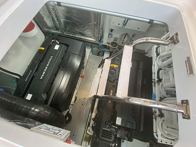 • Twin fuel tanks (in NS8 marine grade alloy) with interconnection system giving 484 gal/581 US gal/2200l capacity