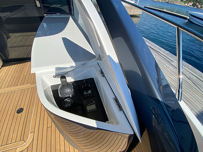 • Sunbed aft with garage with electro-hydraulic door and tender launch system with electric winch (3.45m