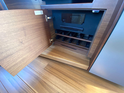 Deck Saloon TV lift with 180° swivel allowing cockpit/saloon viewing