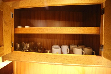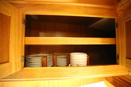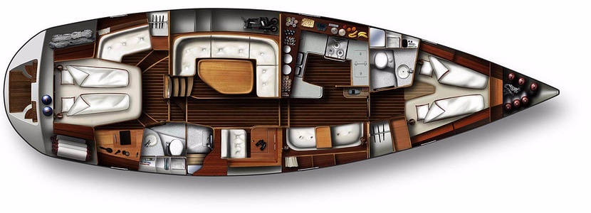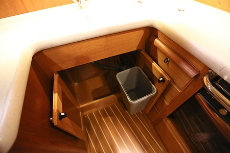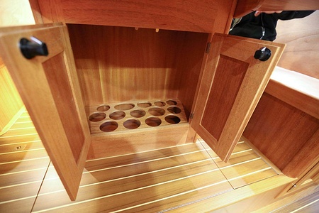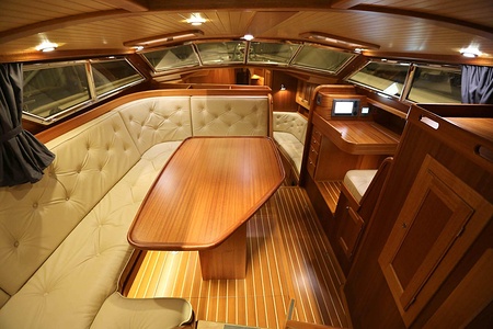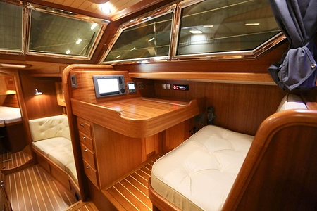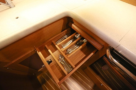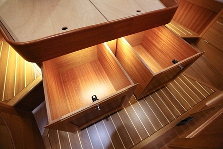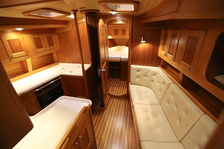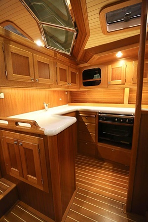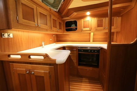 The ceiling in the saloon and galley area is made of ash