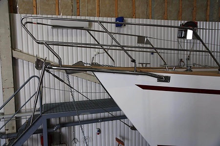 Lifelines with stanchions screwed to fitting, which are bolted through the rail.