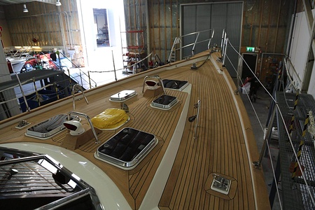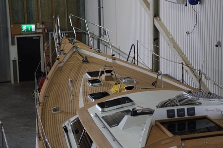 Teak deck of 12 mm thickness glued and screwed