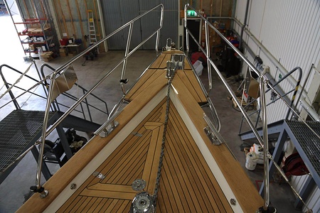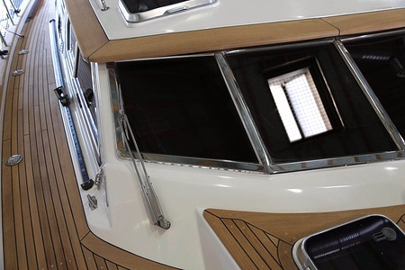 Solid teak on coach roof, on rail and above window frames
