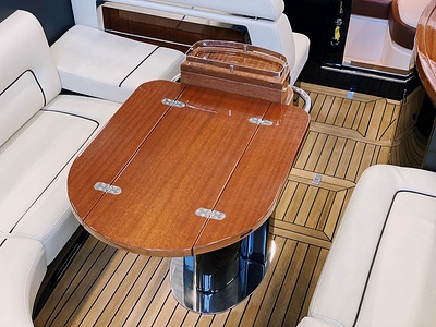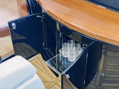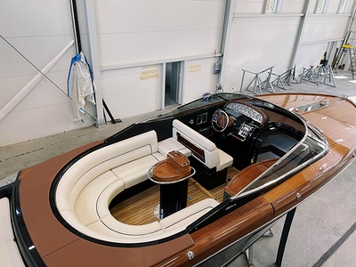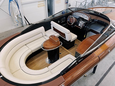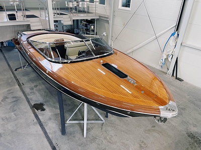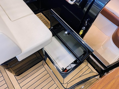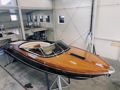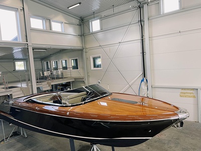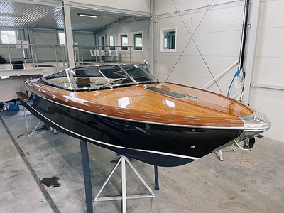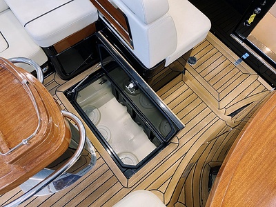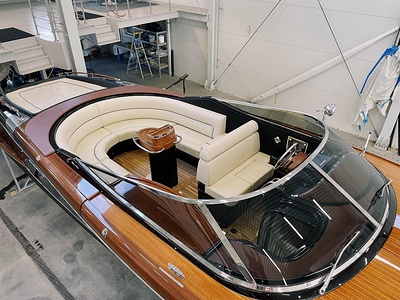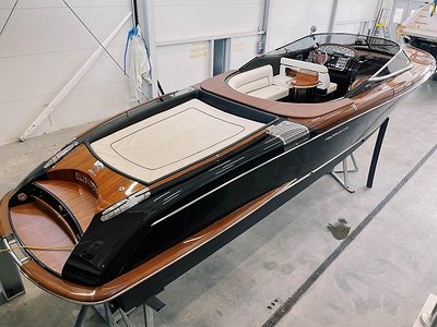 Detta är modellen som mer än någon annan återspeglar Rivas naturliga stilistiska utveckling från förr till modern tid. De mjuka, stilfulla linjerna i den här 33-fotaren förkroppsligar helt en känsla av tradition; det fina, skickligt utformade virket (mahogny med lönninlägg) som används för däcket och de eleganta läderfinisherna på instrumentbrädan och ratten ökar nöjet att kryssa på en tidlös, klassisk yacht som erbjuder oöverträffad komfort och känslor. Innovativa elektroniska tvåväxlade växellådan, installerad på standardversionen, gör att de två kraftfulla 370 hk Yanmar motorerna kan accelerera ännu snabbare och garanterar enastående prestanda. Aquariva har blivit symbolen för Rivas moderna elegans och unika stil och har mött stora framgångar på alla kontinenter, precis som den legendariska Aquarama.