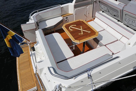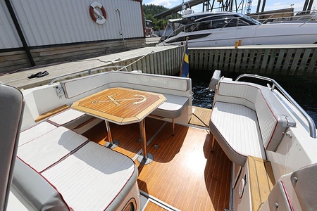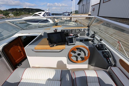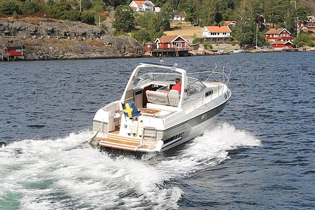 Rymlig daycruiser med en Volvo Penta KAD 300 monterad 2005, endast 376 timmar och med en toppfart på över 30 knop. Layouten har midkabin med två bäddar samt bäddbar salong förut.