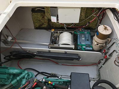 El ankarspel akterut Anchormatic med band, 15kg ankare och fast kontroll vid förarplats