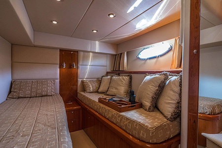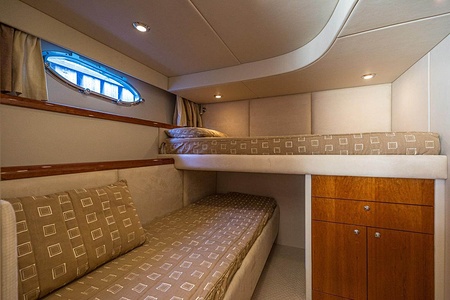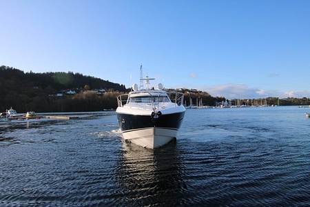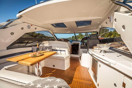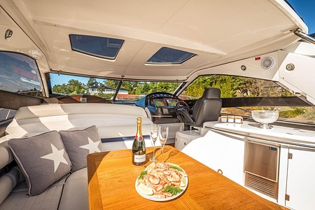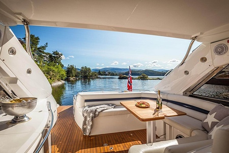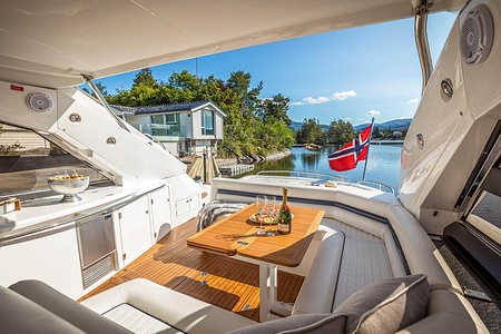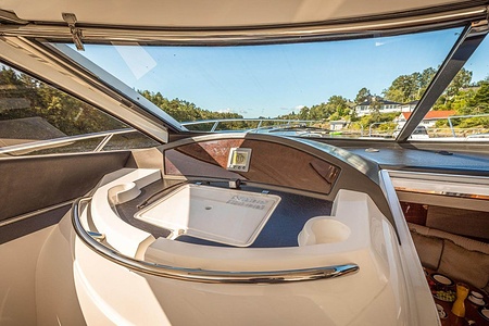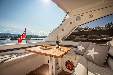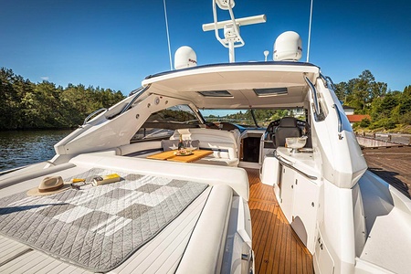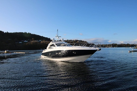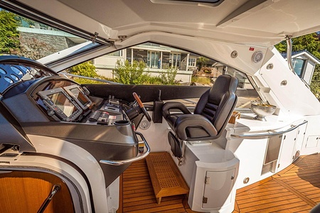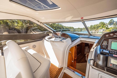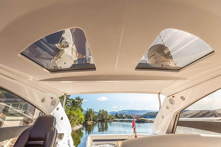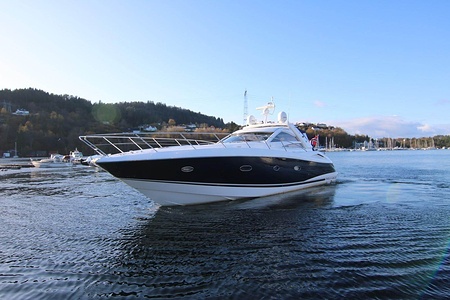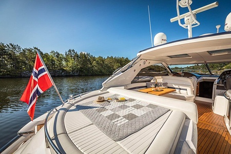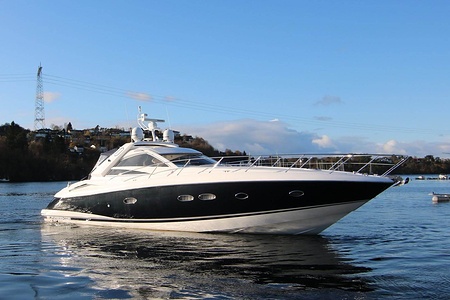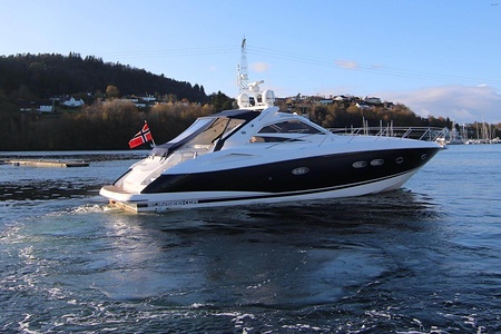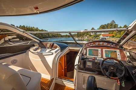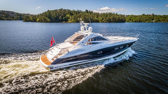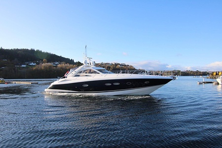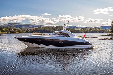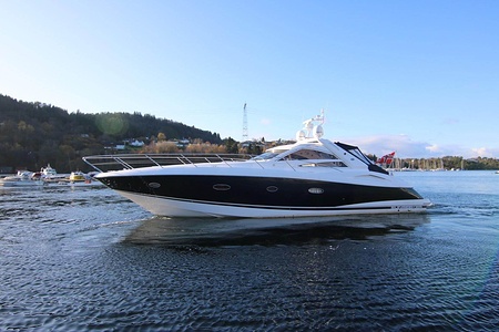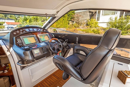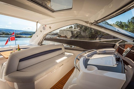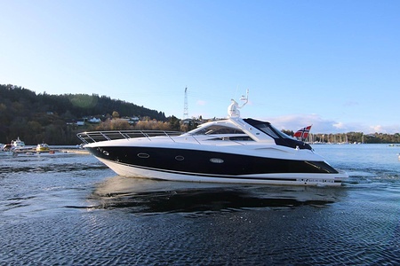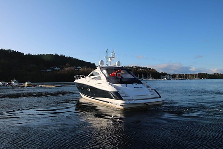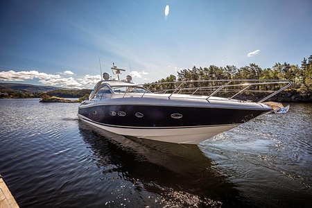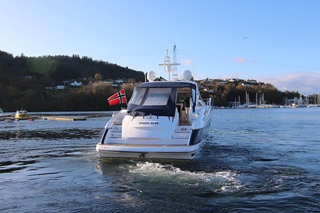 Vi har fått inn en meget velholdt Sunseeker Portofino 53 (57) til salgs for kunde. Ligger i vår utstillingsmarina i Dolviken. En nydelig cruiser med klasse A sertifisering. Båten har vært lagret innendørs frem til 2016 av første eier. Topp utstyrt båt med god plass i cockpit og tre separate lugarer under dekk. Her har man alt utstyrt som trengs for fine dager på sjøen. Noe av utstyret som kan nevnes, hydraulisk hardtop, trustre med Hold-funksjon og Besenzoni elektrisk førerstol.I tillegg følger det med en lettbåt, Avon 320 seasport (timer ca 60) som får plass i garasjen akter. Om du er på jakt etter en fantastisk Performance Cruiser med lavt timeantall så bør denne sees. Båten er registrert i Skipsregisteret.
