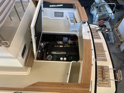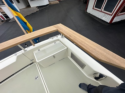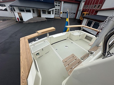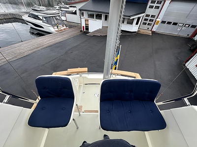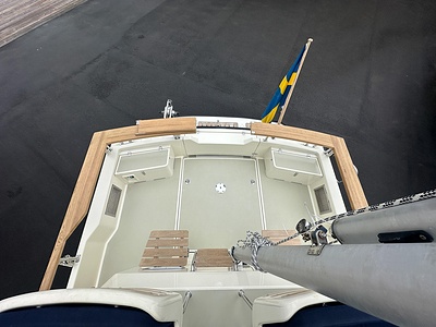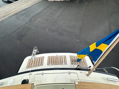 Båten är nyvaxad, polerad och bottenmålad, vilket gör den klar för säsongen. Bogpropeller, elektriskt ankarsystem och trimplan ger full kontroll under alla förhållanden.