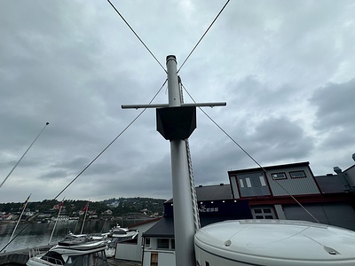 Rigg / Mast och bom, sökarlampa, arbetes belysning fram och bak, bogstrålkastare x 2 i rostfritt