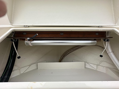 Stävskydd, stävstege, badbrygga med stege, inspectionslucka i mitten