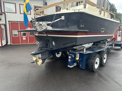 Upptäck din drömbåt med denna **Botnia Targa 27.1 från 2009** – en perfekt skärgårdsjeep i gott skick med endast 466 gångtimmar och en kraftfull Volvo Penta D6-370 motor som erbjuder både fart och pålitlighet för alla dina äventyr på vattnet. Med en toppfart på cirka 38 knop och genomtänkt utrustning är den idealisk för både dagsutflykter och längre turer i skärgården.