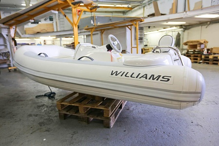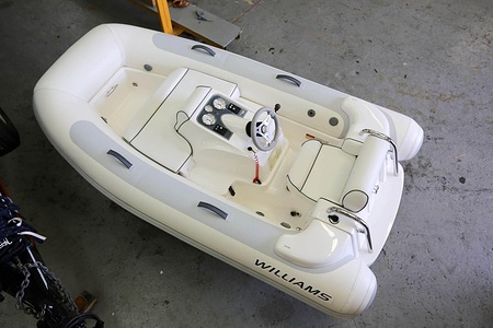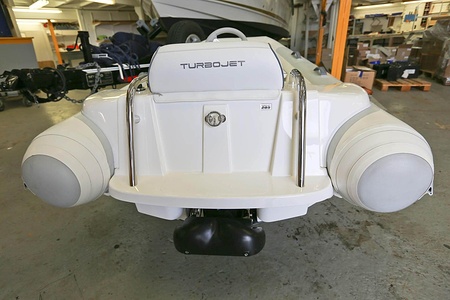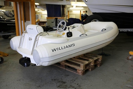 Williams TurboJet 285 vattenjet RIB är en mycket populär gummibåt att ta med sig på badplattformen eller i garaget på en större båt. Kan användas för att åka vattenskidor. Båten är nyservad och rekondad och lite använd.