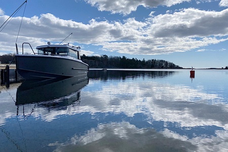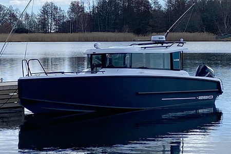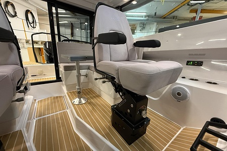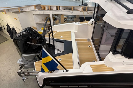 Den starka motorn levererar imponerande kraftresurser och ger en sportig men samtidigt kontrollerad körupplevelse, oavsett om du marschar bekvämt eller vill ta dig fram snabbt. Tillsammans med de fina köregenskaperna och den precisa manövreringen får du en båt som är lika rolig att köra som den är trygg.