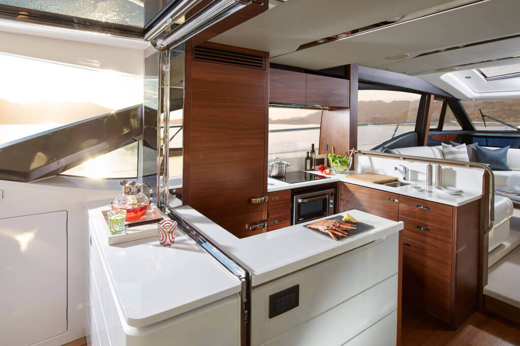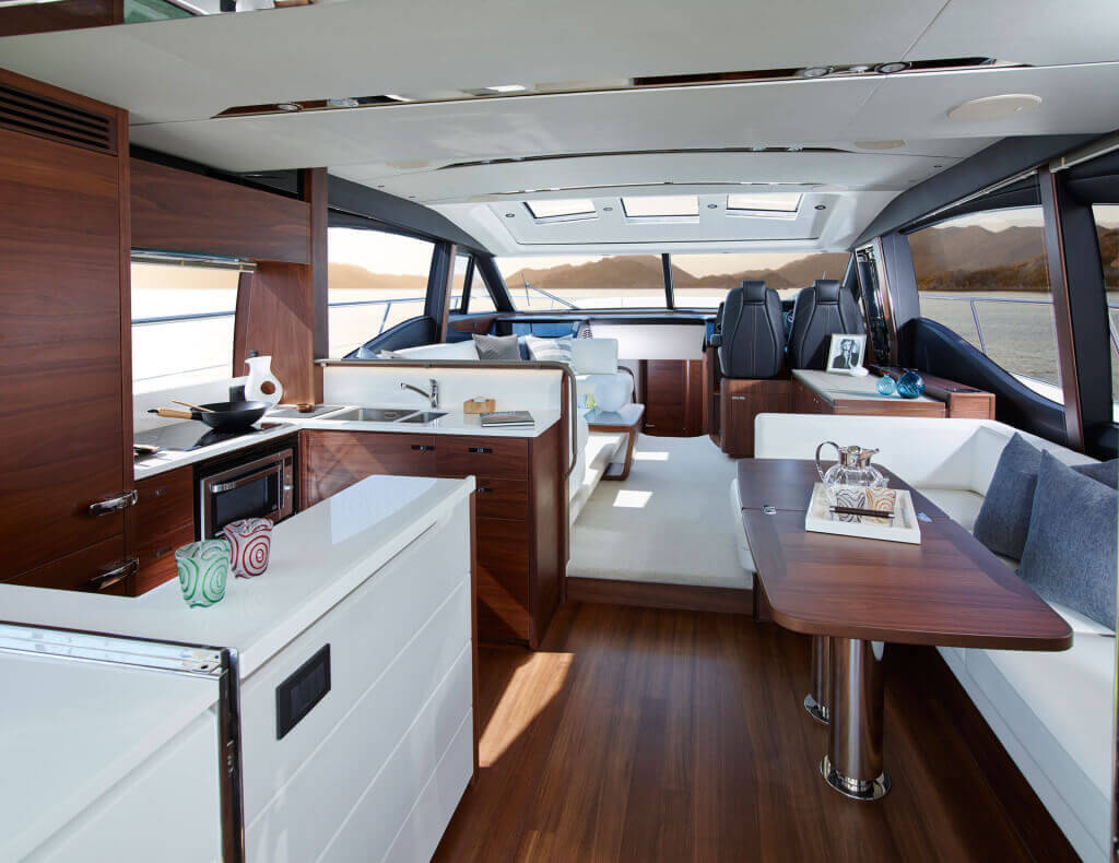 • Timber-laid galley and helm floors