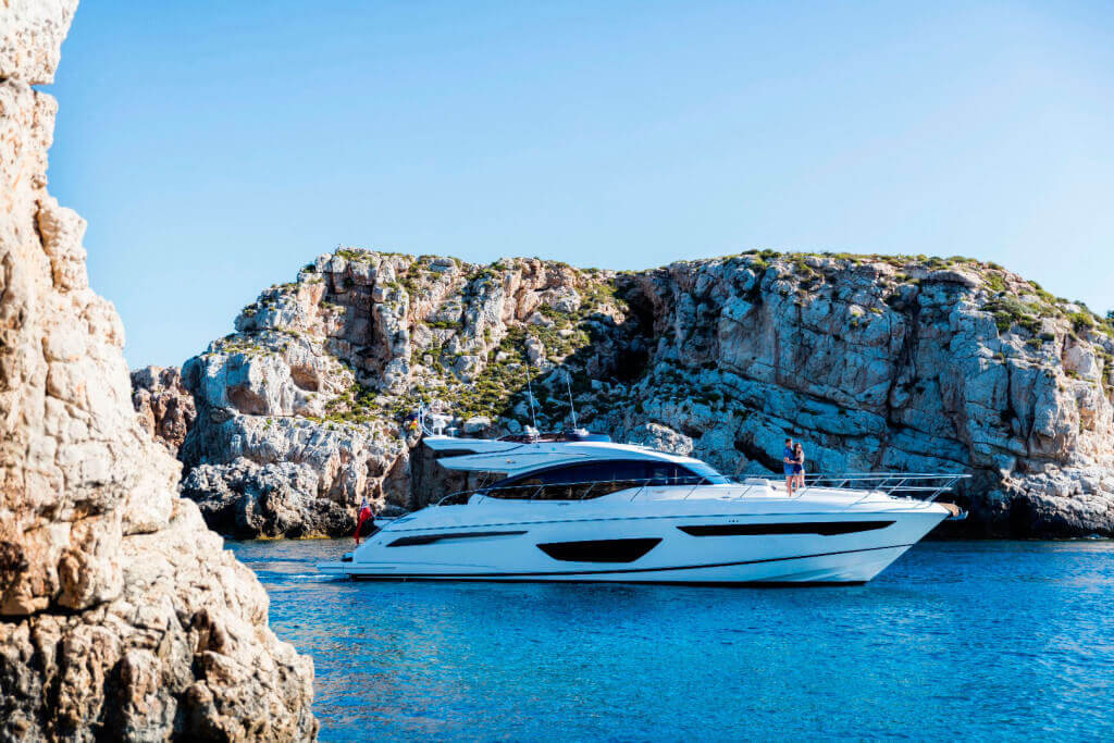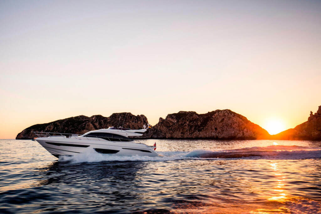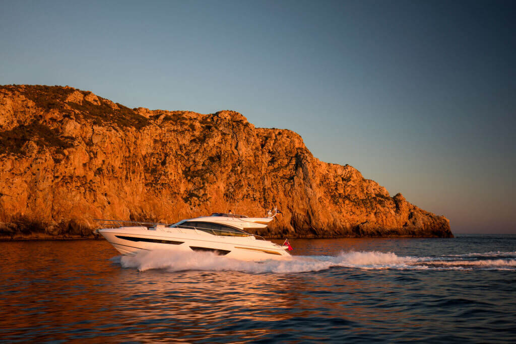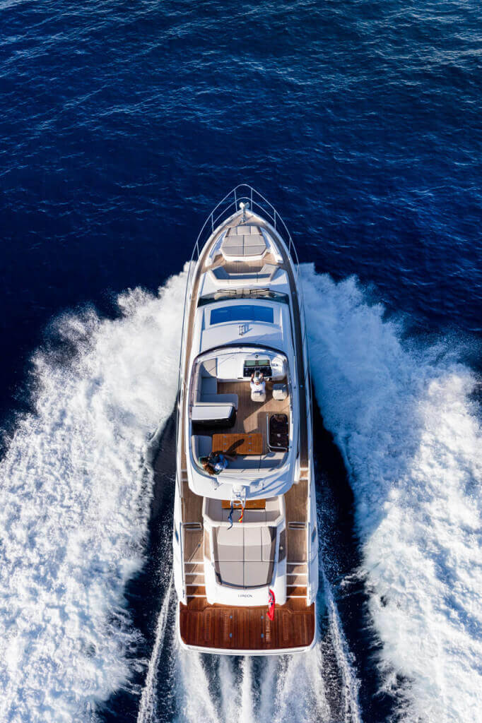 † Maximum speeds will vary depending on cleanliness of hull, condition of sterngear, loading of craft, water and air temperatures, sea conditions and other factors. Speed estimates are therefore given in good faith but without warranty or liability on the part of us or Princess Yachts International plc.