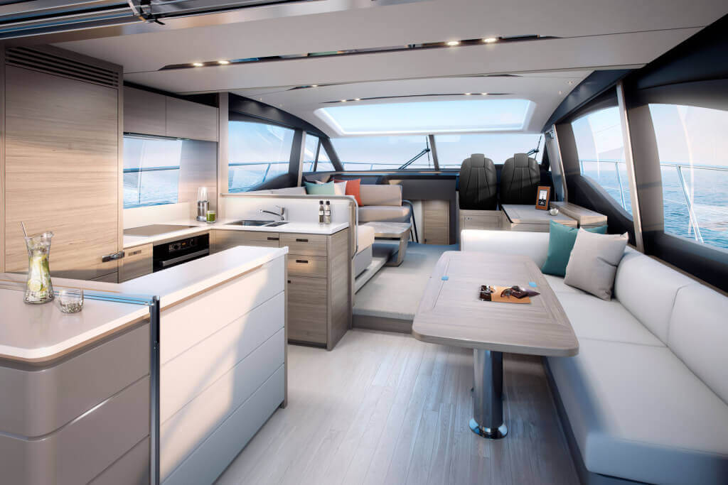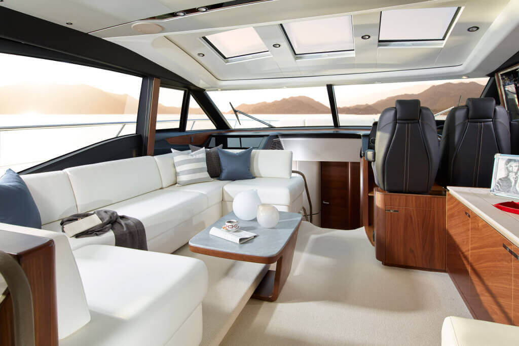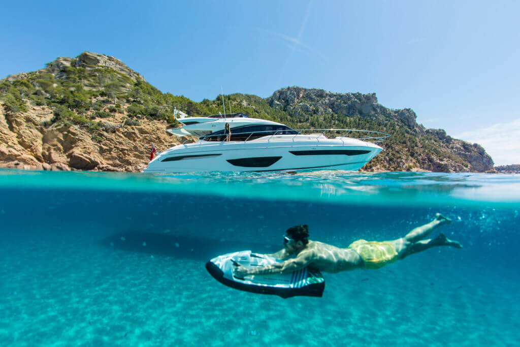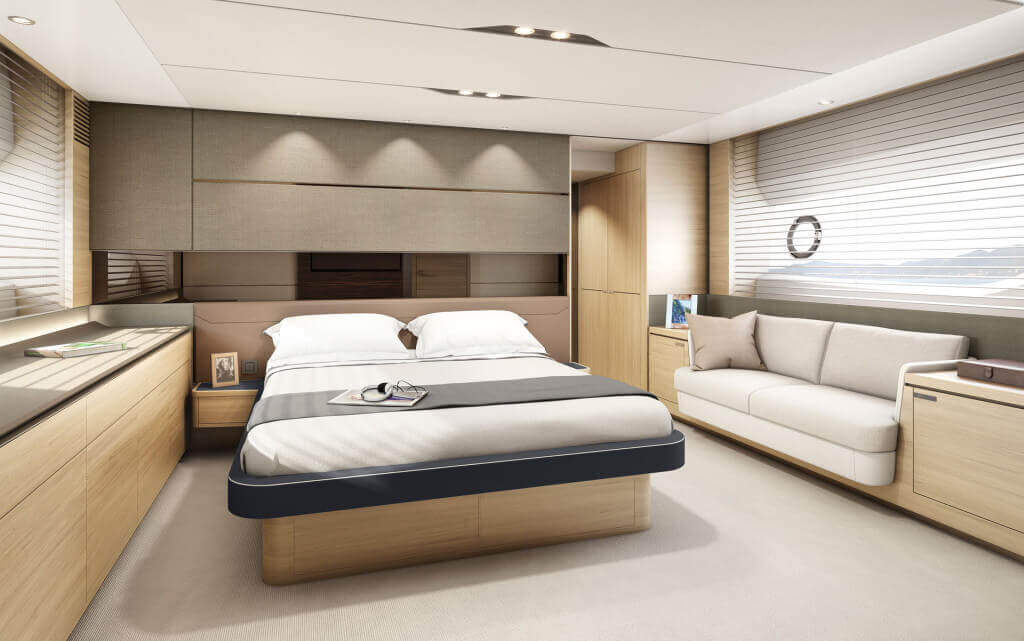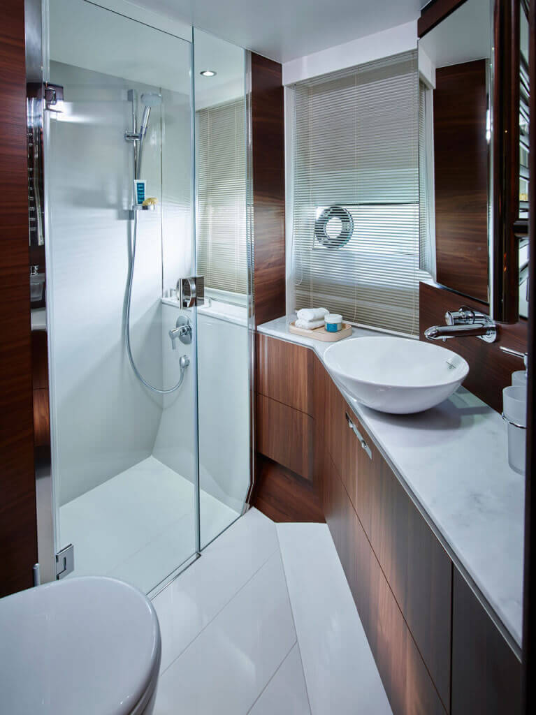 There’s an undeniable presence about the all-new S65, with her slender streamlined form that somehow also exudes a predatory air. A lightweight deep-V hull delivers on this promise with breathtaking agility up to 38 knots. When at anchor, peacefulness descends onto her generous well-appointed deck areas, which include a spacious foredeck seating area, whilst her hydraulic bathing platform and 3.3m tender garage become the perfect base for watersports. Her spacious interior features a sociable galley aft arrangement which opens out to the cockpit, whilst below deck eight guests are accommodated across four cabins, three of which are en suite.
