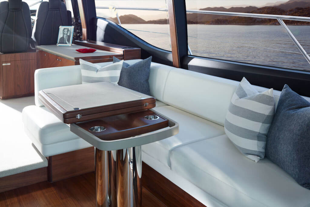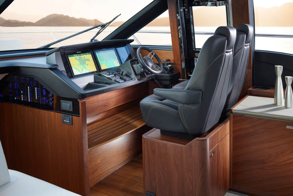 • Helm position with raise/lower console, repeat navigation equipment including radar/chartplotter and engine instrumentation