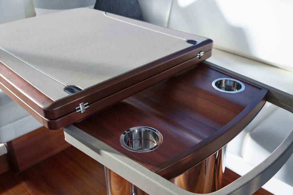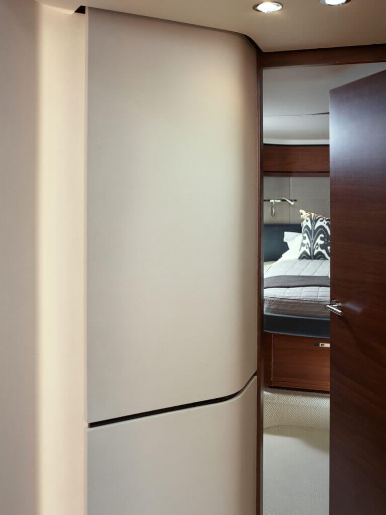 • Lockable gas strut assisted hatches to engine room, lazarette and optional crew cabin