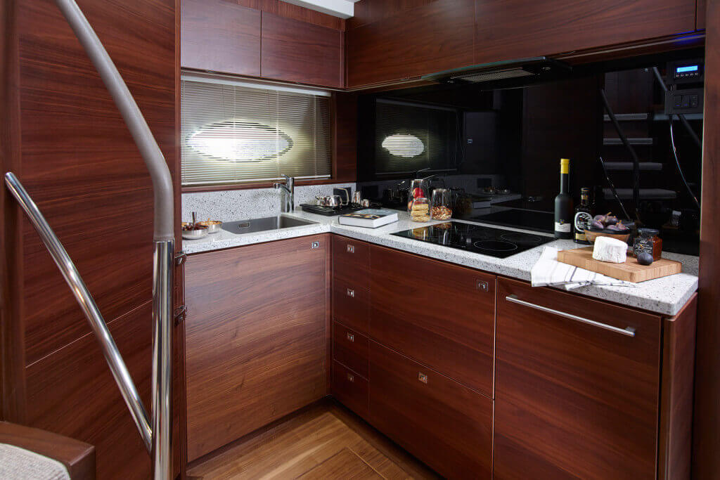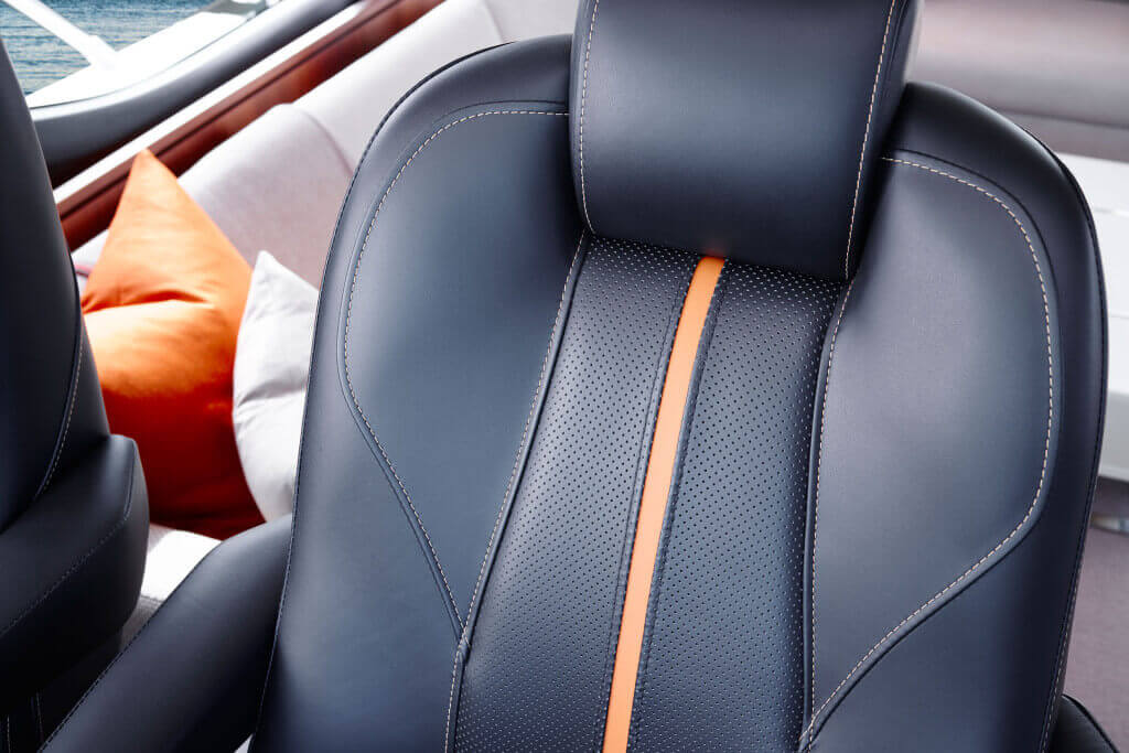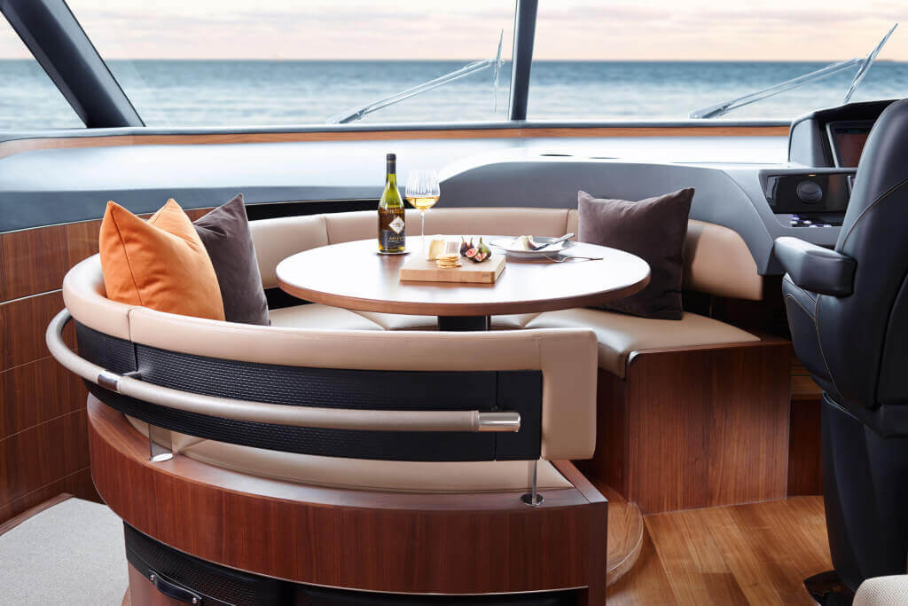 Sleek and aggressive exterior styling will be a feature of S CLASS, from the dark wraparound superstructure glass and angled hull windows to the raked profile that flows into a strong architectural section in the cockpit, these boats deliver real attitude. The Sportbridge is accessed by a contemporary stairwell, designed to allow an uninterrupted view aft from the deck saloon, and delivers a level of space and sophistication that would put many conventional flybridges’ to shame.