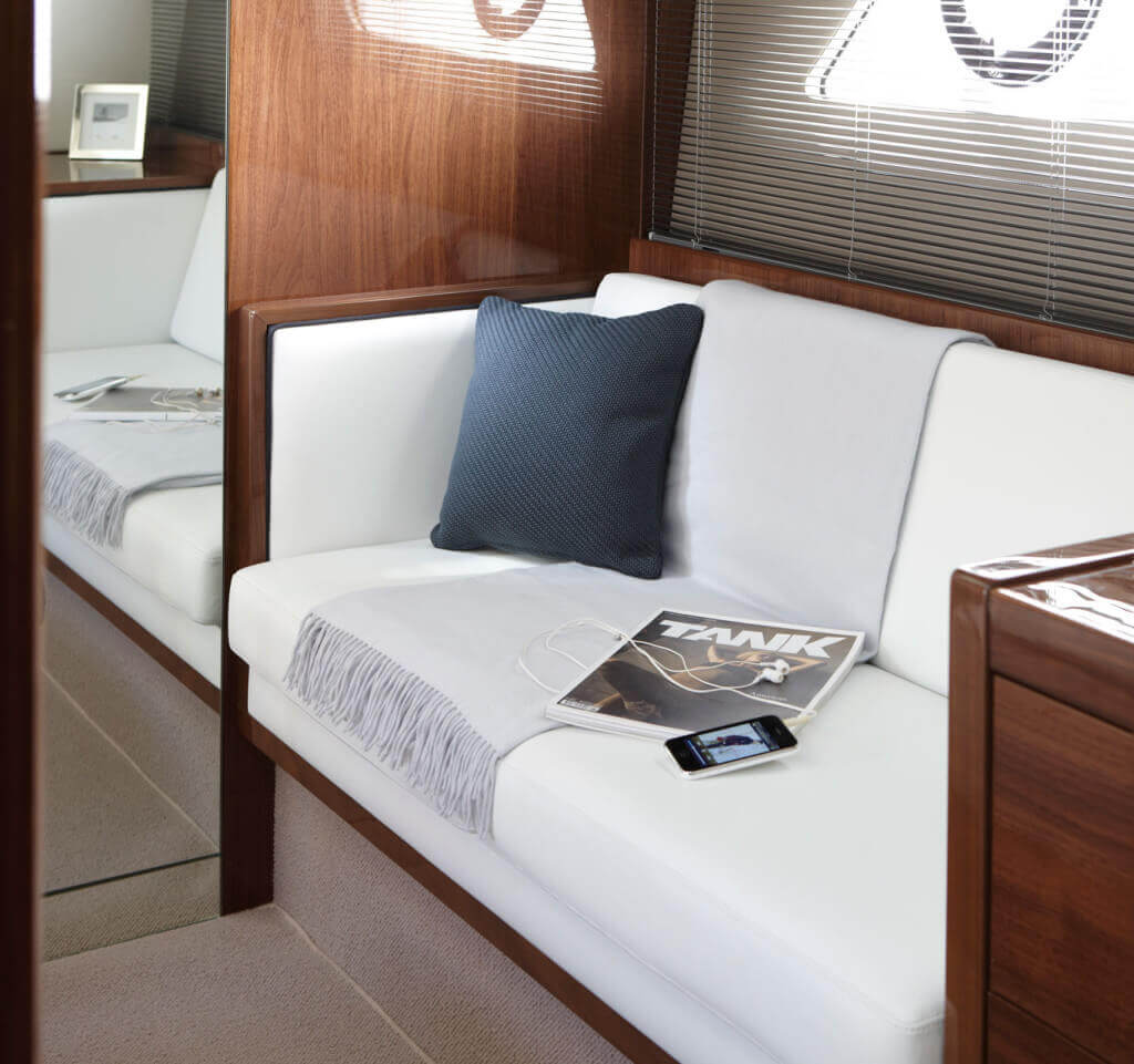 • Optional sunpad layout available with aft seat extension and sliding backrests for conversion