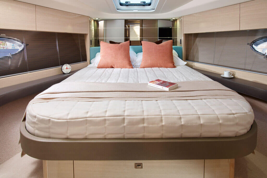 The V39 also incorporates the new resin infusion technology which is unique to Princess, and reduces weight and adds strength to the boat simultaneously. It ensures that the boat can hold its owns in demanding seas whilst being easy to drive.