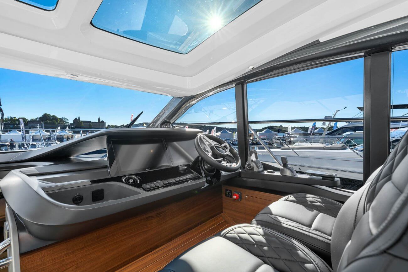 • Twin upholstered seats, manually adjustable helm seat (fore/aft), fixed position navigator seat
