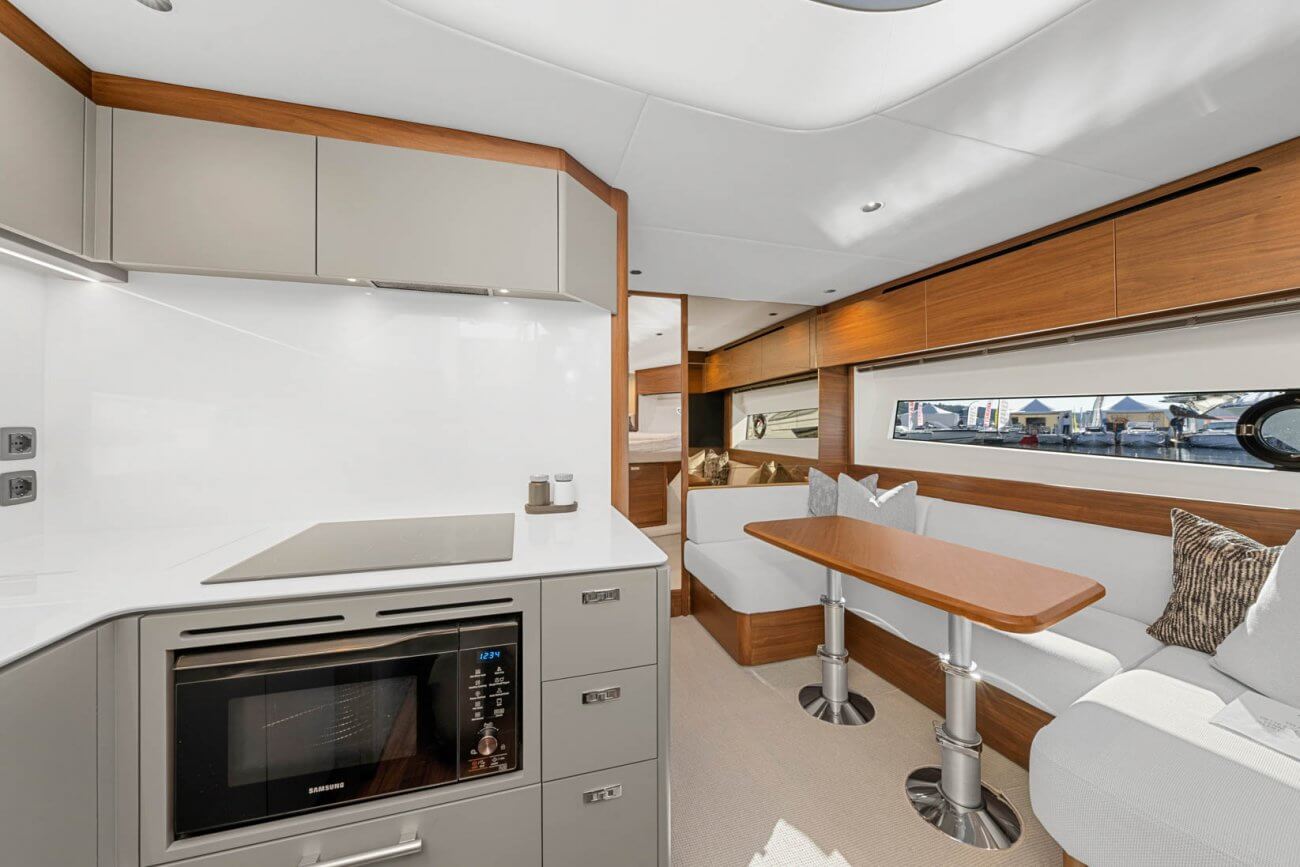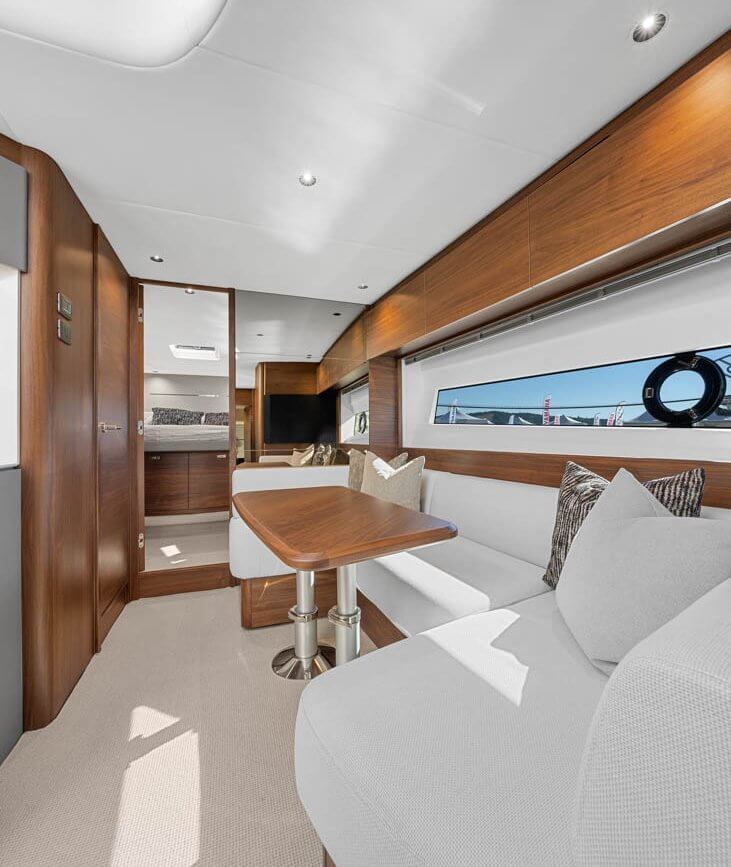 • Upholstered aft U-shaped & forward L-shaped seating/dining area (optional seat infill)